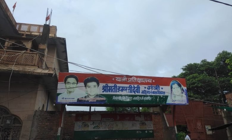 ये तस्वीर डबरा विधानसभा क्षेत्र की है, जहाँ से इमरती देवी कमलनाथ सरकार में महिला बाल विकास के मंत्रालय की जिम्मेदारी संभाले हुए थी , सत्ता के फेरबदल में अपने राजनीतिक गुरु ज्योतिरादित्य सिंधिया के साथ वे जब भाजपा में शामिल हुई तब भी उन्हें शिवराज सरकार में भी महिला बाल विकास मंत्रालय का जिम्मा सौंपा गया लेकिन उसके बाद हुए विधानसभा उपचुनाव में इमरती देवी चुनाव हार गईं और अभी वे निगम मंडल में नियुक्ति उम्मीद लगाए बैठी हैं । दरअसल मामला उनके विधानसभा क्षेत्र के प्रसिद्ध मन्दिर श्री हनुमान मंदिर जौरासी पर बने यात्री प्रतीक्षालय का है, इस प्रतीक्षालय का निर्माण कार्य इमरती देवी द्वारा कांग्रेस सरकार के समय कराया गया लिहाजा विकास पट्टिका का रंग कांग्रेसी होना ही था साथ में पट्टिका पर प्रदेश के तत्कालीन मुख्यमंत्री कमलनाथ के साथ इमरती देवी के नेता ज्योतिरादित्य सिंधिया का भी लगाया गया । सिंधिया और इमरती ने पार्टी बदल ली, विचारधारा बदल ली और यहाँ तक गाड़ी पर लगे झंडे के साथ गले पड़ने वाली पट्टी का रंग बदल लिया लेकिन नहीं बदल पाए तो विकास पट्टिका ।