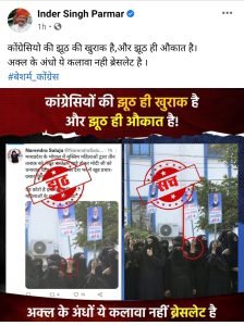 कांग्रेस नेता नरेंद्र सलूजा ने लिखा कि मध्यप्रदेश के भोपाल में मुस्लिम महिलाओं द्वारा तीन तलाक़ को लेकर रास्ते पर खड़े होकर मोदी जी को धन्यवाद दिया गया , इसका देश भर में खूब प्रचार- प्रसार किया गया, मगर इसकी असलियत कुछ और है। नरेंद्र सलूजा द्वारा फोटो शेयर किए जाने के बाद कई लोगों ने इस तस्वीर पर सवाल उठाए हैं। एक ट्विटर यूजर ने इस पर सवाल उठाते हुए लिखा है कि अगर फोटो को जूम करके देखा जाए तो उनके हाथ में उज्जैन मंदिर में बांधा जाने वाला धागा दिखाई देगा। उन्होंने दावा किया कि बीजेपी की महिला मोर्चा ही बुर्का पहनकर भोपाल रैली में शामिल हुई थी।