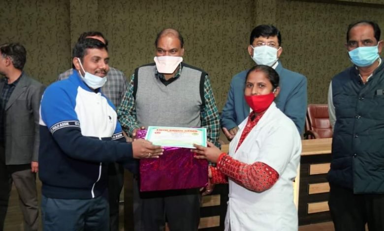 टीकाकरण कार्य में लगे अधिकारियों व कर्मचारियों को प्रदान किए गए पुरस्कार