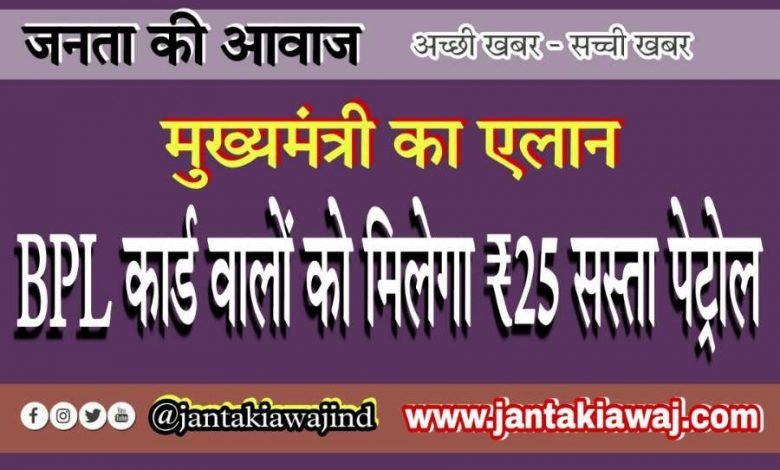 मुख्यमंत्री का एलान, BPL कार्ड वालों को मिलेगा ₹25 सस्ता पेट्रोल