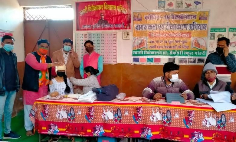 स्वामी विवेकानंद स्कूल पर लगा वैक्सीन टीकाकरण शिविर