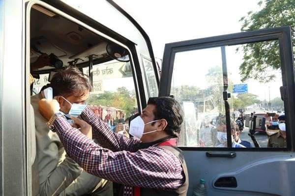 परिवहन मंत्री राजपूत ने ‘मेरा मास्क-मेरी सुरक्षा’ को अभियान में बस अड्डे पर आने जाने वाली बसों का औचक निरीक्षण किया। उन्होंने बस यात्रियों को समझाइश देते हुए मास्क पहनाए। उन्होंने कहा कि कोरोना वायरस के बढ़ते प्रभाव से बचने का एकमात्र उपाय आपका मास्क ही है। उन्होंने ड्राइवर एवं कंडक्टर से कहा कि बिना मास्क के किसी भी यात्री को बस में न चढ़ने दे।