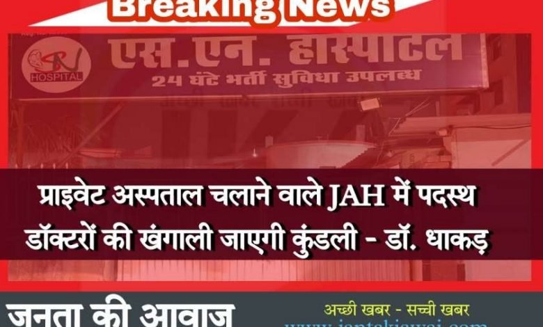 प्राइवेट अस्पताल चलाने वाले JAH में पदस्थ डॉक्टरों की खंगाली जाएगी कुंडली – डॉ. धाकड़