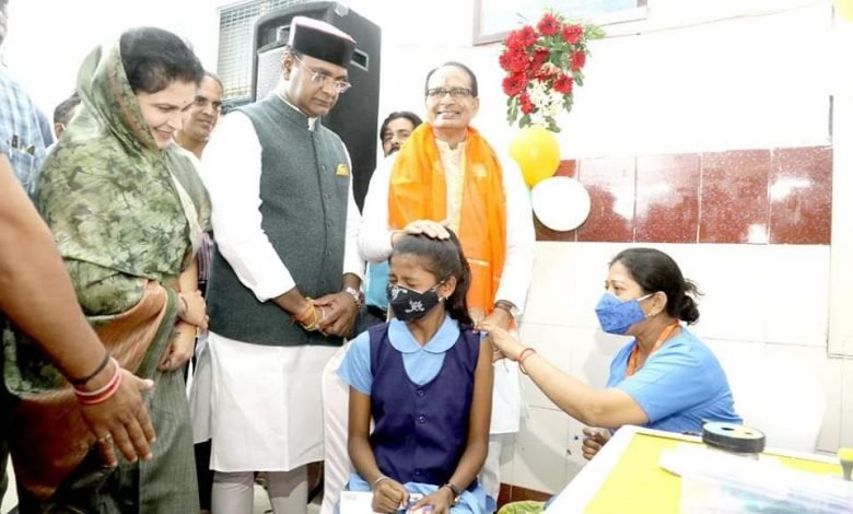 मुख्यमंत्री श्री चौहान, प्रदेश में 12 से 14 वर्ष के बच्चों के कोविड-19 टीकाकरण अभियान के शुभारंभ कार्यक्रम को संबोधित कर रहे थे। शासकीय नवीन उच्चतर माध्यमिक विद्यालय, अरेरा कालोनी में इस कार्यक्रम में चिकित्सा शिक्षा मंत्री श्री विश्वास सारंग, विधायक श्रीमती कृष्णा गौर, अपर मुख्य सचिव स्वास्थ्य श्री मो. सुलेमान, आयुक्त स्वास्थ्य डॉ. सुदाम खाड़े, मिशन संचालक सुश्री प्रियंका दास तथा अन्य अधिकारी उपस्थित थे।