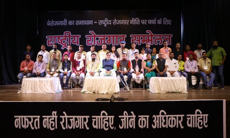 राष्ट्रीय रोजगार सम्मेलन में भाग लेकर लोटे राजेन्द्र सिंह धाकड़ ने बताया कि देश की बात फाउंडेशन द्वारा आयोजित राष्ट्रीय रोजग़ार सम्मेलन में देश भर से लगभग 150 संघठनो के प्रतिनिधियों ने हिस्सा लिया और राष्ट्रीय रोजगार नीति को लेकर सार्थक चर्चा की ओर रोजग़ार नीति के लिए राष्ट्रीय रोजग़ार आंदोलन की रूपरेखा पर भी चर्चा हुई।धाकड़़ ने कहा कि आज केंद्र सरकार देश के बड़े संस्थानों को निजी हाथों में सौपकर युवाओ के भविष्य के साथ खिलवाड़ कर रही है। लाखों युवा हर साल डिग्री लेकर रोजगार के लिए दर दर ठोकरे खाने को मजबूर हो रहे है। इसीलिए आज राष्ट्रीय रोजगार नीति का बनना समय की मांग है ताकि युवाओ का भविष्य सुरक्षित हो सके।