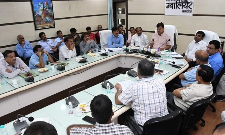 शुक्रवार को यहाँ बाल भवन में आयोजित हुई बैठक में नगर निगम सभापति श्री मनोज तोमर सहित अन्य पार्षदगण, कलेक्टर श्री कौशलेन्द्र विक्रम सिंह, नगर निगम आयुक्त श्री किशोर कान्याल, अतिरिक्त पुलिस अधीक्षक श्री अभिनव चौकसे, अपर आयुक्त नगर निगम श्री अतेन्द्र सिंह गुर्जर, ऊर्जा मंत्री के ओएसडी श्री महक सिंह व एसडीएम ग्वालियर सिटी श्री प्रदीप सिंह तोमर तथा नगर निगम, पीएचई, विद्युत वितरण कंपनी, पीआईयू, लोक निर्माण तथा शहर विकास से जुड़े विभिन्न विभागों के अधिकारी मौजूद थे।
