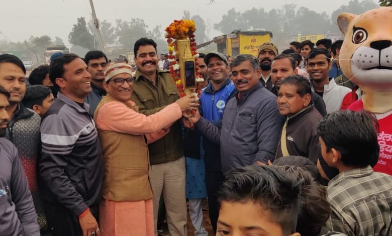 इस टार्च रैली का भव्य स्वागत पूर्व विधायक व उपाध्यक्ष म.प्र पाठ्य पुस्तक निगम राज्यमंत्री दर्जा प्रहलाद भारती ने खेलो इंडिया यूथ गेम्स की टोर्च यात्रा का भव्य स्वागत पोहरी विधानसभा के आकूर्सी, अहीर मारौरा, परिच्छा, सीएम राइस स्कूल पोहरी, #अमन पब्लिक स्कूल पोहरी और शहर के मुख्य मार्गो पर किया गया।ततपश्चात यह यात्रा श्योपुर के लिए रवाना हुई।ग्रामीण और शहरी नागरिकों ने टॉर्च का भव्य स्वागत किया।
