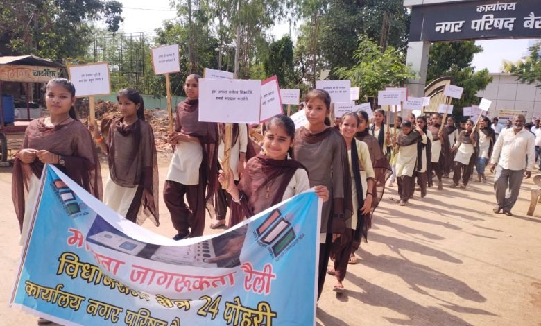 नगर परिषद बैराड एवं स्कूली बच्चे ने निकाली मतदाता जागरूकता रैली