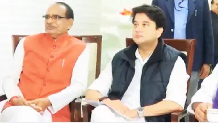 जानिए शिवराज सिंह के बगल में बैठ कर क्या बोल रहे हैं सिंधिया