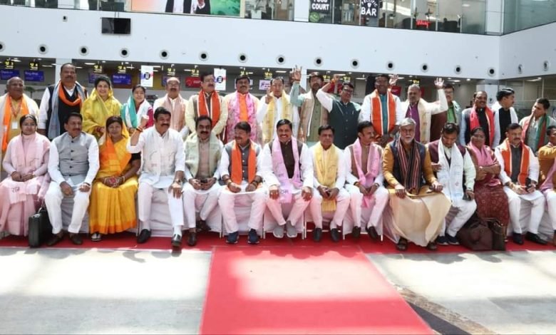 प्रदेश के मुख्यमंत्री डॉ. मोहन यादव ने अपनी पूरी कैबिनेट के साथ आज उत्तर प्रदेश के अयोध्या धाम में राम मंदिर पहुंचे और रामलला के दर्शन किए. बता दें कि बीते दिन मुख्यमंत्री डॉ. मोहन यादव ने लखनऊ में ‘यादव महाकुंभ’ कार्यक्रम के बाद भोपाल लौट गए थे. इसके बाद उन्होंने ऐलान किया था कि सोमवार, 4 मार्च को वह मध्य प्रदेश कैबिनेट के सदस्यों के साथ अयोध्या धाम जाएंगे.