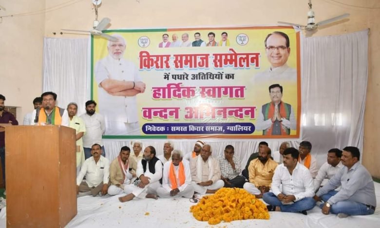 ग्वालियर लोकसभा सीट से भाजपा प्रत्याशी भारत सिंह कुशवाह को भरोसा नहीं है कि भाजपा का चुनाव चिन्ह कमल के फूल और मोदी के चेहरे के भरोसे उनकी चुनावी नैया पार लग पाएगी इसलिए वे क्षेत्र में लगातार सोशल इंजीनियरिंग पर ध्यान दे रहे हैं । सोमवार को भाजपा प्रत्याशी ने ग्वालियर में किरार समाज की बैठक गांधी रोड स्थित किरार भवन में आयोजित की , जहां उन्होंने समाज के चुनीदा लोगों के साथ बैठक कर भाजपा के पक्ष में मतदान करने के लिए शिवराज सिंह चौहान के नाम की दुहाई दी । भारत सिंह कुशवाह भलीभांति जानते हैं कि लोकसभा ग्वालियर में लगभग सभी विधानसभा सीटों में किरार समाज का वोट बैंक बहुलता में है और इसी बहुलता के भरोसे भारत सिंह कुशवाह अपनी वैतरणी पार करना चाहते हैं। विधानसभा चुनाव तक किरार समाज का वोट बैंक शिवराज सिंह चौहान के नाम पर लगभग भारतीय जनता पार्टी को ही जाता था लेकिन शिवराज सिंह को मुख्यमंत्री एन बनाए जाने से किरार समाज भारतीय जनता पार्टी से नाखुश है इसलिए इस बार किरार समाज का वोट बैंक कांग्रेस के पक्ष में खिसक सकता है।