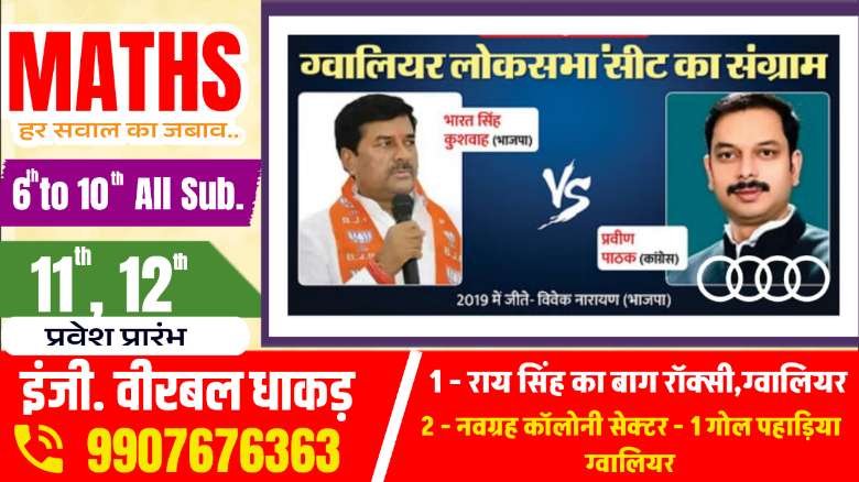 ग्वालियर मध्य प्रदेश की उन चुनिंदा सीटों में से एक है, जहां 2019 के मुकाबले ज्यादा वोटिंग हुई है। इस बार भाजपा ने सांसद विवेक नारायण शेजवलकर का टिकट काटकर भारत सिंह कुशवाहा को उम्मीदवार बनाया है। उनके सामने कांग्रेस विधायक प्रवीण पाठक को उम्मीदवार बनाया है। इससे मुकाबला दिलचस्प हो गया है। इस बार दोनों प्रमुख पार्टियों को मिलाकर 19 उम्मीदवार किस्मत आजमा रहे हैं। ग्वालियर में तीसरे चरण में सात मई को मतदान हुआ था। इस बार 62.13 प्रतिशत वोटिंग हुई, जो 2019 के 59.78 प्रतिशत के मुकाबले करीब ढाई प्रतिशत अधिक है। 2014 में इस सीट पर 52.73 प्रतिशत वोटिंग ही हुई थी। ग्वालियर में 2004, 2009, 2014 और 2019 में भाजपा को आसान जीत मिली लेकिन इस बार मुकाबला कड़ा है। 2023 के विधानसभा चुनाव में इस लोकसभा सीट की आठ में से चार-चार सीटें भाजपा और कांग्रेस की झोली में गिरी थी। भाजपा शुरुआत से सीट को मुश्किल मान रही थी। इसी वजह से चेहरा बदला गया। लोकसभा चुनाव 2024 के प्रचार में भाजपा और कांग्रेस ने पूरी ताकत झोंकी है। हालांकि, कांग्रेस प्रत्याशी को प्रचार के लिए कम समय मिला। प्रचार की कमान प्रदेश स्तरीय नेताओं के हाथ में ही रही। ग्रामीण क्षेत्रों में मजबूत रही कांग्रेस ने इस बार फोकस शहर और शहर में मजबूत रहने वाली भाजपा ने ग्रामीण पर ध्यान लगाया है। मौजूदा समय में 8 विधानसभा सीटों में से दोनों दलों के चार-चार विधायक हैं।भाजपा ने ग्वालियर सीट से भारत सिंह कुशवाह को उम्मीदवार बनाया है, जिन्हें विधानसभा चुनाव में हार का सामना करना पड़ा था। प्रधानमंत्री नरेंद्र मोदी के नाम पर चुनाव लड़े कुशवाहा के सामने कांग्रेस ने विधायक प्रवीण पाठक के तौर पर कड़ी चुनौती पेश की है।