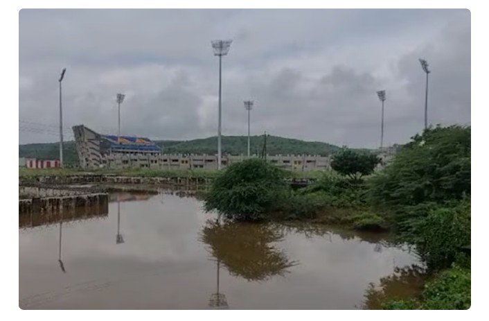 रनों की बारिश से पहले ही टूट गई ग्वालियर स्टेडियम की दीवार, मैदान में घुसा पानी
