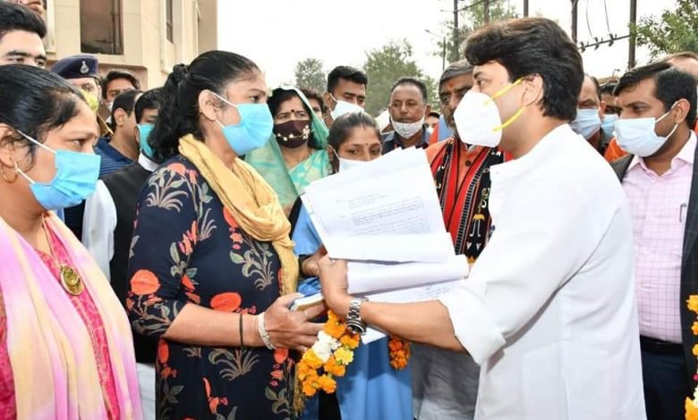 स्मार्ट सिटी बसों पर तैनात महिला कंडक्टरो का केंद्रीय मंत्री सिंधिया ने किया सम्मान